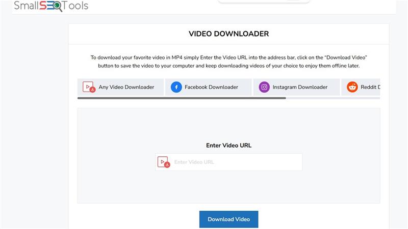 SmallSEOTools.com's all-in-one video downloader is quite popular among its users. Why? Because this tool is completely free to use, allowing you to save unlimited clips from whichever social media channel you want. Additionally, it supports full HD downloads with multiple format options. So, whenever you need to make an instant download, give it a try.