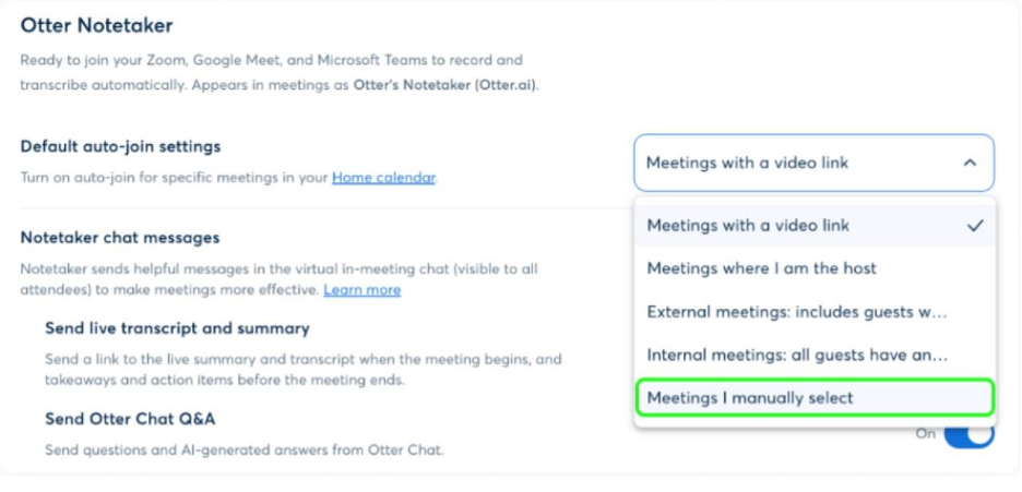 Q1. Do I have the option to disable Otter AI Notetaker for particular meetings only?