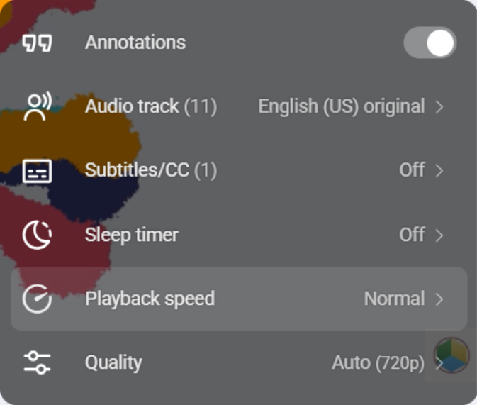 • Choose the option “Playback Speed” and select your preferred speed.